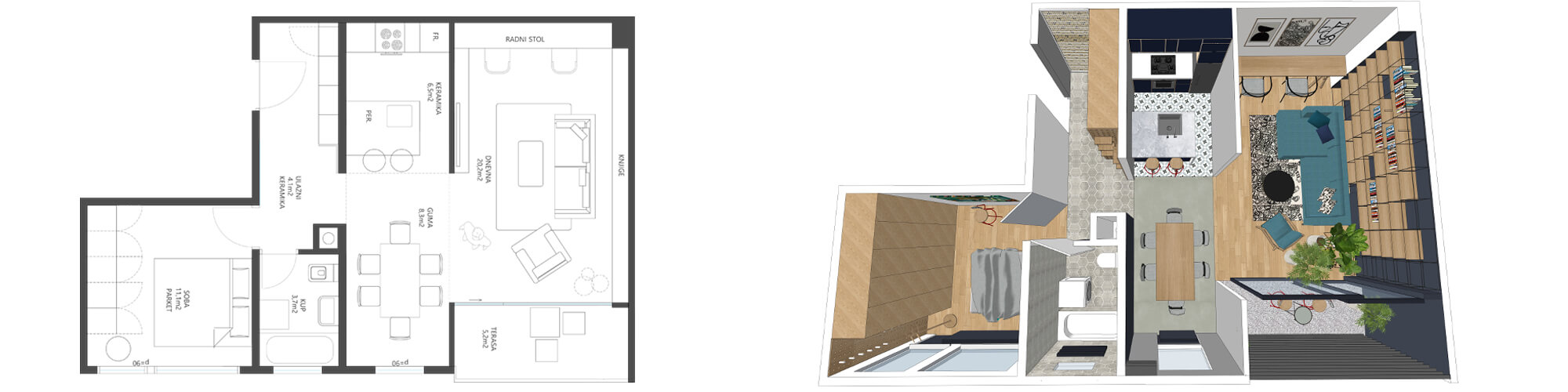 Tailor-made for its users, this medium-sized apartment in a medium-sized building in the middle of its neighborhood, opened up to the greenery and let the large canopies provide shade for it. In the open space overlooking the oak tree, it is easy to relax with a book, sleep through the day (if you are a dog) or work from 9 to 17.